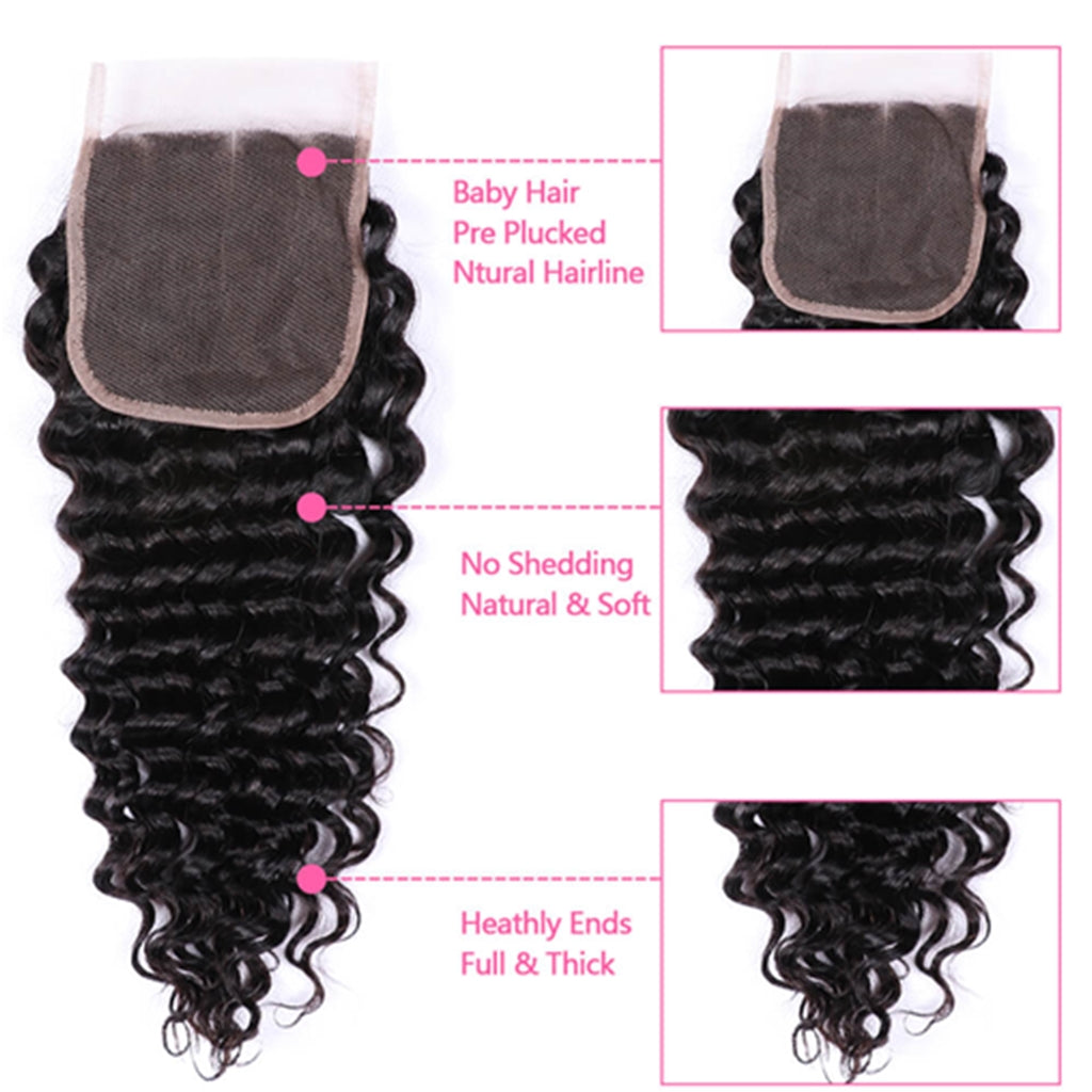 10A Brazilian Deep Wave 3 Bundles With Lace Closure Deal