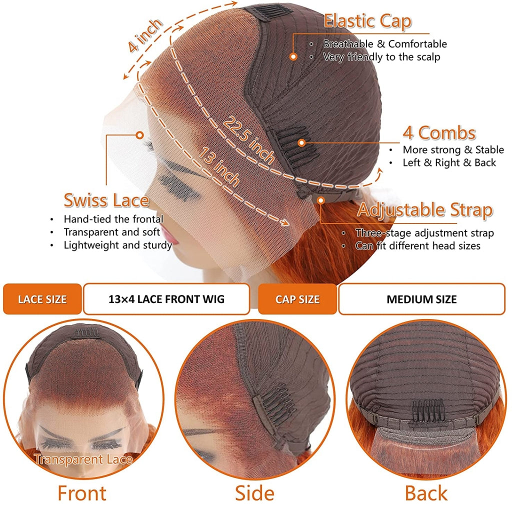 Fleeky Hair Orange Ginger Color Wigs Transparent Lace Straight 13x4 Lace Frontal Wig 4x4 Lace CLosure Wig